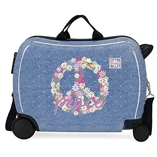 Roll Road Peace Resväska Barn Blå 50x39x20 cms Stelt ABS Kombinationslås Sidospår 38L 1,8 kg 4 Dubbla hjul Bagage Hand, Blå, Talla única, barnresväska