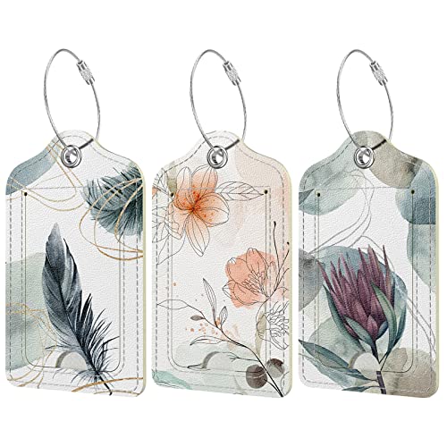 Hnogri 3 st bagagetaggar i PU-läder för resväska, resekryssning, bagagelapp med integritetsklaff, namn-ID etikett och metallögla för kvinnor män bagage handväska skolväska ryggsäck, bläckblomma