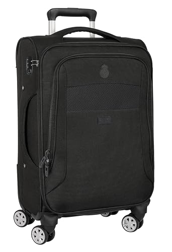 Real Madrid Premium - Trolley mjuk stuga, 20 tum, resväska med hjul, säkerhetslås, lätt resväska, 35 x 20 x 51 cm, svart, svart, Estándar, tillfällig