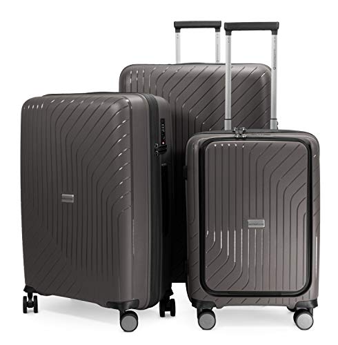 Huvudstadsväska TXL – reserullgardiner i 3 storlekar, polypropylen, hårt skal, rubust och lätt, titan, 3er Kofferset (Laptopfach), Resväska set