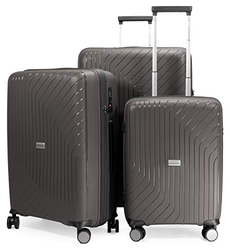 Huvudstadsväska TXL – reserullgardiner i 3 storlekar, polypropylen, hårt skal, rubust och lätt, titan, 3er Kofferset, Resväska set