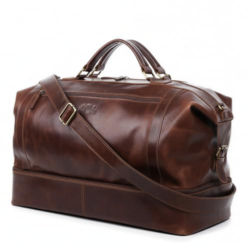 SID & VAIN Yale resväska i äkta läder | Weekend Semester Tote 50 cm stor | Handgjort handbagage, brun - 46 cm, L, resväska, Brun- 46 cm, L, Resväska