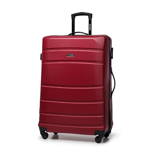 ROYALTY LINE, Set med 3 resväskor, styv ABS Ultralätt 4 360° svängbara hjul - Storlek S 55x38x18cm, M 67x44x24cm, L 76x49x28cm, Dubbla remmar, Kombinationslås, Förstärkta handtag, Röd