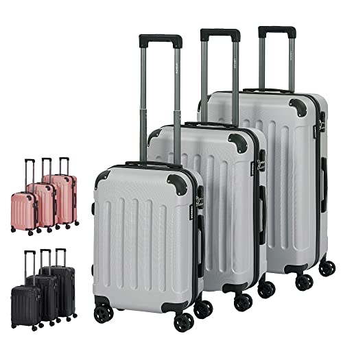 Arebos 3-delat set med hårda resväskor I ABS-hårda skal I Trolley-resväskeset I Resväska med teleskophandtag I Inkl. dragkedjelås, 360°-hjul I Resväskeset M-L-XL | Silver