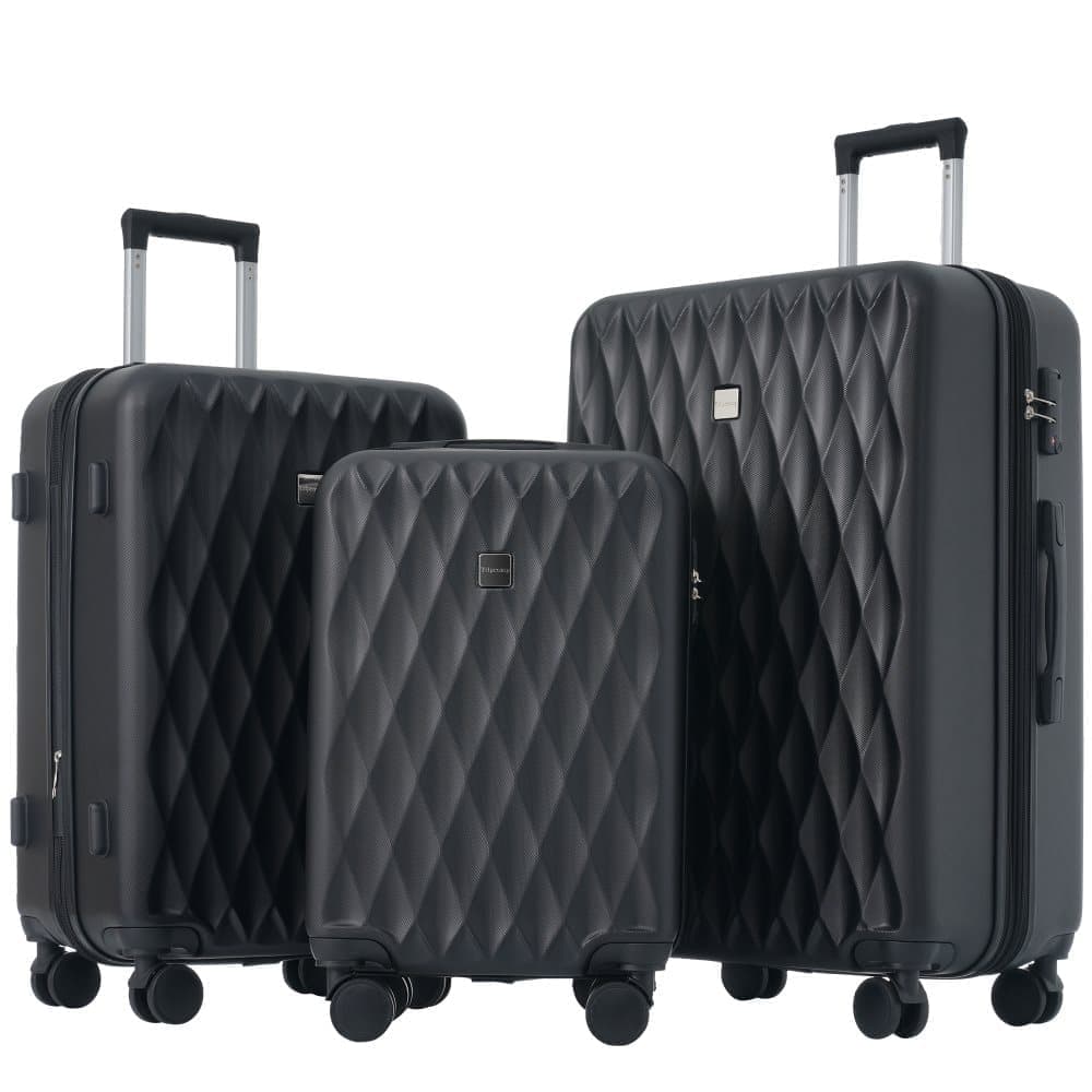 Resväska-set, M-L-XL, Hårda resväskor, 4 hjul, ABS-material, TSA-lås, Svart