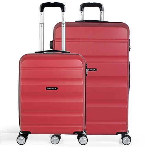 ITACA - uppsättning av 2 stela res resväskor 4 hjul vagn 55/75 cm abs. resistenta och lätta. Bagage. liten stuga godkänd och stor., Coral