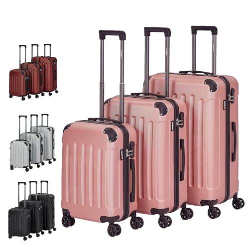 Arebos 3-delat set med hårda resväskor I ABS-hårda skal I Trolley-resväskeset I Resväska med teleskophandtag I Inkl. dragkedjelås, 360°-hjul I Resväskeset M-L-XL | Roségoud