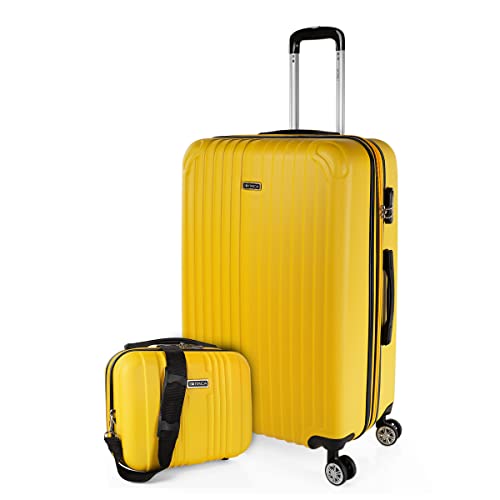 ITACA - Set Resväskor 4 hjul ABS Trolley Extensibles Hårda och lätta. Handtag Hänglås. Liten hytt Låg kostnad, Medium och Stor och Nödvändig T71500, Gul, 76 cm + 35 cm, Grundläggande