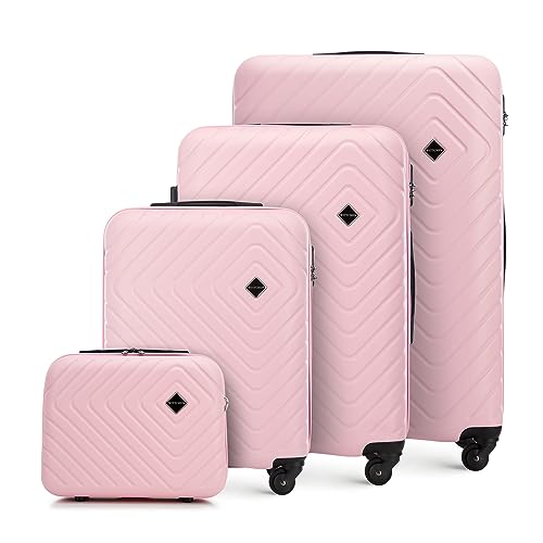 WITTCHEN GROOVE Line | Set med 4 resväskor | Resväska med sminkväska | Resväska med ABS-hölje | Nummerlås, teleskophandtag | 4 länkhjul | S+M+L+Kosmetikväska Rosa SAS/Ryanair/Norwegian/Wizz Air