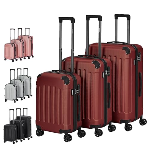 Arebos 3-delat set med hårda resväskor I ABS-hårda skal I Trolley-resväskeset I Resväska med teleskophandtag I Inkl. dragkedjelås, 360°-hjul I Resväskeset M-L-XL | Röd