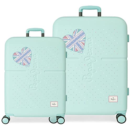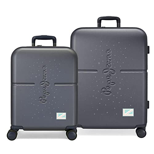 Pepe Jeans Jane Resväskor Set Blå 55/70 cms Stelt ABS Integrerad TSA-stängning 116L 7,54 kg 4 Dubbla hjul Tygbagage, Blå, Talla Unica, Bageset