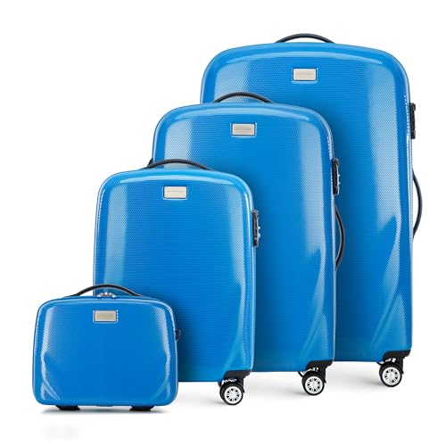 WITTCHEN PC Ultra Light Hårt bagage Resväska Vagn resväska Set med 4 resväskor i Polykarbonat Fyra svängbara hjul TSA Lås Aluminium teleskopiskt handtag Storlek (S+M+L+Necessär) Blå