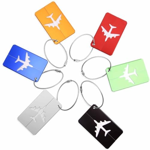Vicloon Bagagetikett, 6 st resväska i aluminium aluminiumlegering reseetikett med strängar i rostfritt stål för att markera nycklar, resväskor, väskor