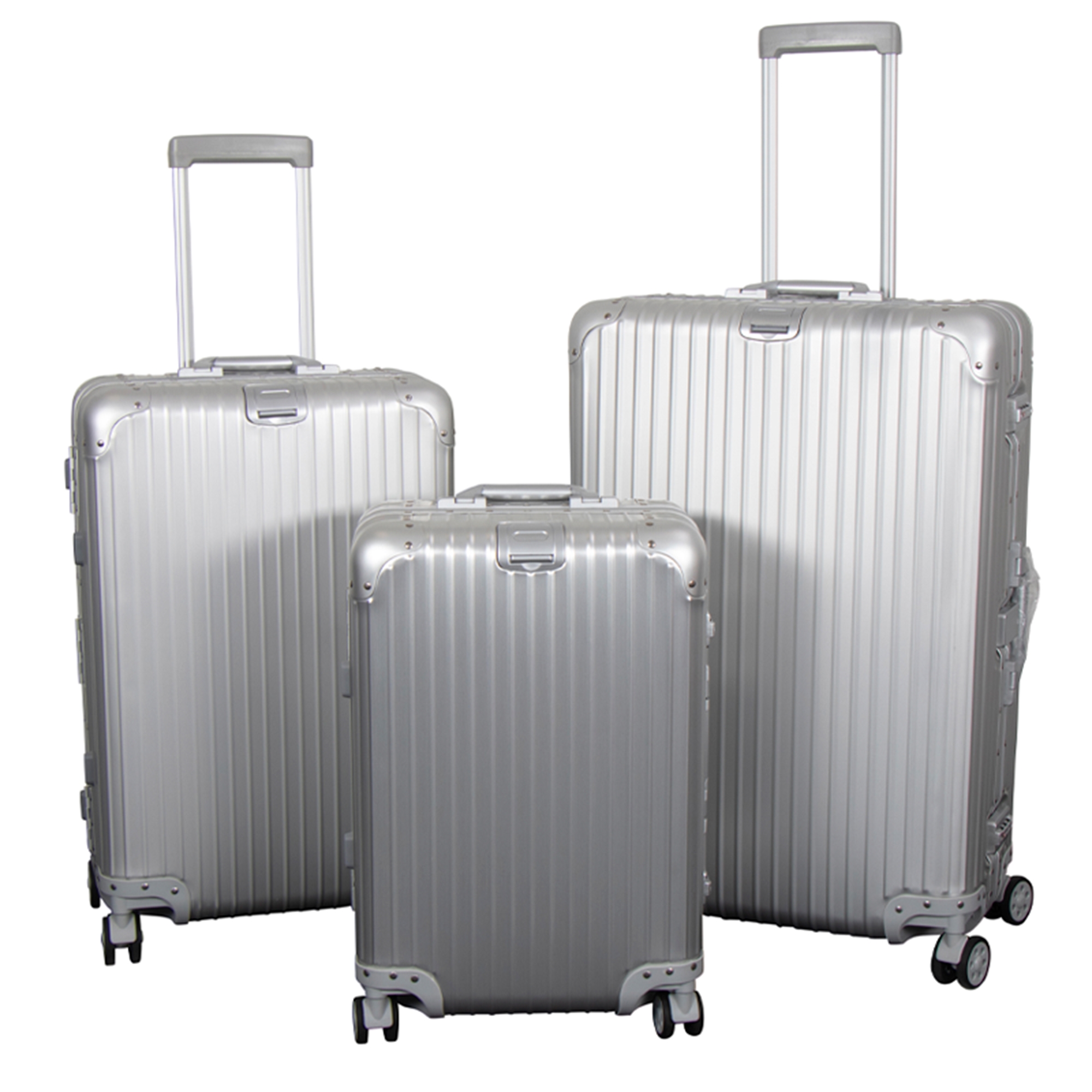 Aluminiumresväskor - 3 st. set - Lyxiga resväskor - Silverfärgad med TSA-lås