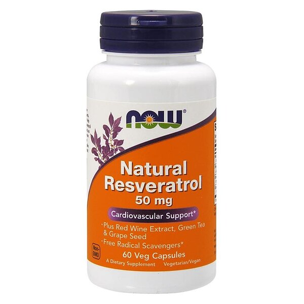 Now Foods Natural Resveratrol with Red Wine Extract, 200mg 60 Vege Capsules