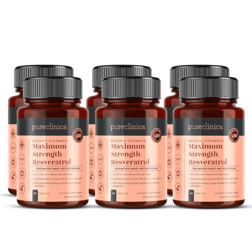 Trans-Resveratrol 500 mg | 90 Veganska Kapslar | Högdoserad | 98 % Renhet | Naturligt Fermenterad | Med Piperin | Laboratorietestad | Premiumkvalitet