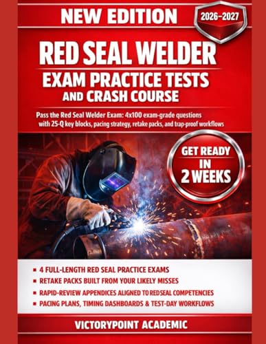RED SEAL WELDER EXAM PRACTICE TESTS AND CRASH COURSE: 4 FULL LENGTH EXAM-GRADE QUESTIONS WITH 25-Q KEY BLOCKS, CRASH-COURSE RATIONALES, PACING STRATEGY, RETAKE PACKS, AND TRAP-PROOF WORKFLOWS