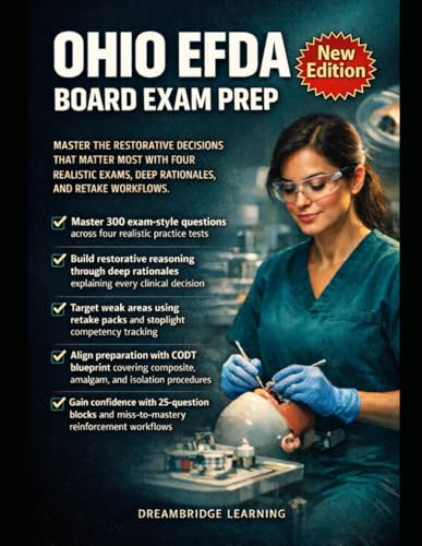 OHIO EFDA BOARD EXAM PREP : EXPANDED FUNCTION DENTAL AUXILIARY PRACTICE TESTS AND RATIONALES: MASTER THE RESTORATIVE DECISIONS THAT MATTER MOST WITH ... EXAMS, DEEP RATIONALES, AND RETAKE WORKFLOWS.