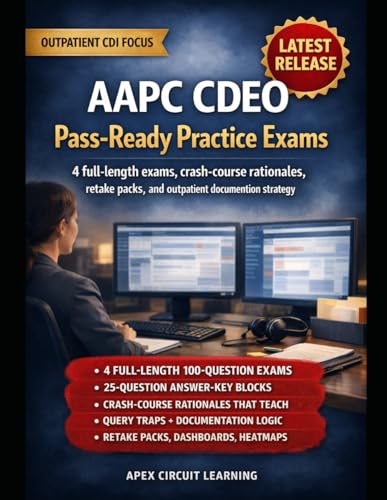AAPC CDEO Pass-Ready Practice Exams: Four Full-Length Practice Tests to Master the Certified Documentation Expert Outpatient (CDEO) Exam with Strategy, Case Drills, and Retake Plans