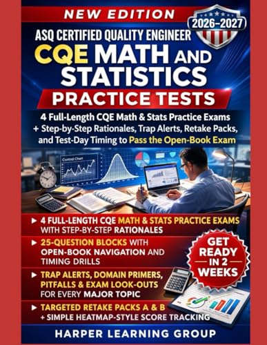 ASQ CERTIFIED QUALITY ENGINEER CQE MATH AND STATISTICS PRACTICE TESTS: 4 FULL-LENGTH CQE MATH & STATS PRACTICE EXAMS + STEP-BY-STEP RATIONALES, TRAP ALERTS, RETAKE PACKS, AND TEST-DAY TIMING