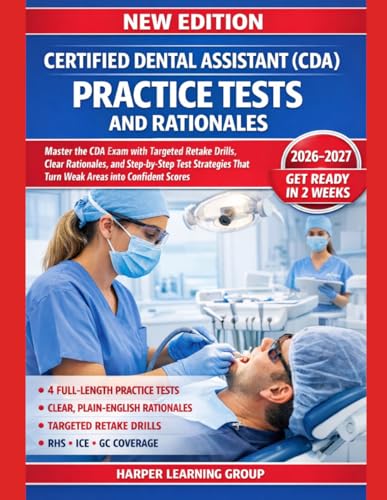 CERTIFIED DENTAL ASSISTANT (CDA) PRACTICE TESTS AND RATIONALES: PRACTICE TESTS, TARGETED RETAKE DRILLS, CLEAR RATIONALES, AND STEP-BY-STEP TEST STRATEGIES THAT TURN WEAK AREAS INTO CONFIDENT SCORES