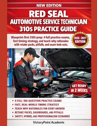 RED SEAL AUTOMOTIVE SERVICE TECHNICIAN 310S PRACTICE GUIDE: 310S PREP: 4 FULL PRACTICE EXAMS, FAST TIMING STRATEGY, AND TEACH-WHY RATIONALES WITH RETAKE PACKS, PITFALLS, AND EXAM LOOK-OUTS.