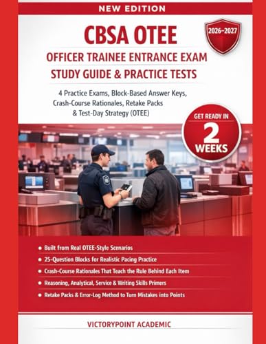 CBSA OTEE OFFICER TRAINEE ENTRANCE EXAM STUDY GUIDE AND PRACTICE TESTS: 4 PRACTICE EXAMS, CRASH-COURSE RATIONALES, RETAKE PACKS & TEST-DAY STRATEGY (OTEE)