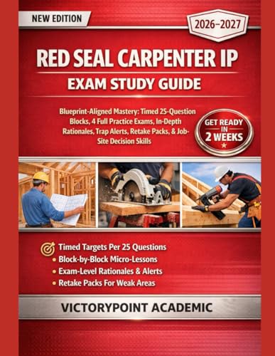 RED SEAL CARPENTER IP EXAM STUDY GUIDE: BLUEPRINT-ALIGNED MASTERY: TIMED 25-Q BLOCKS, 4 FULL PRACTICE EXAMS, DEEP RATIONALES, TRAP ALERTS, RETAKE PACKS, AND JOB-SITE DECISION SKILLS