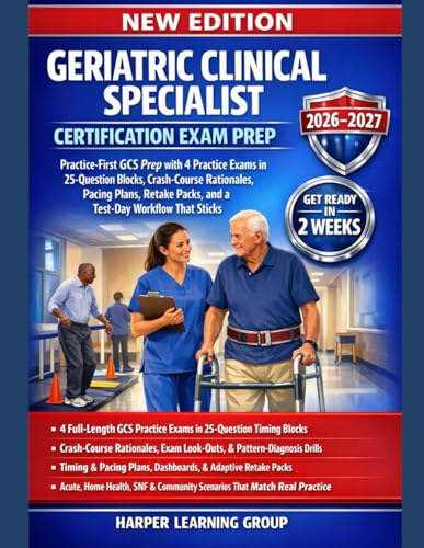GERIATRIC CLINICAL SPECIALIST CERTIFICATION EXAM PREP: Practice-First GCS Prep with 4 Practice Exams, Crash-Course Rationales, Pacing Plans, Retake Packs, and a Test-Day Workflow That Sticks