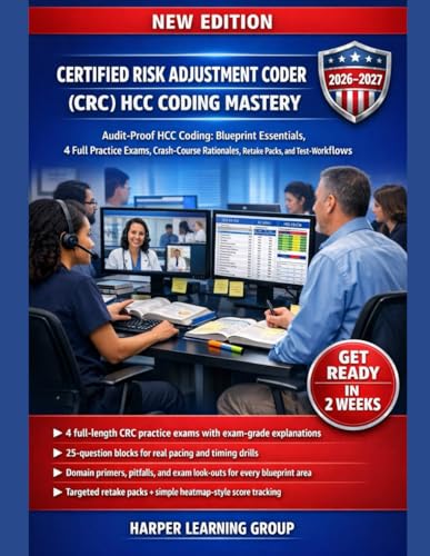 CERTIFIED RISK ADJUSTMENT CODER (CRC) HCC CODING MASTERY: 4 FULL PRACTICE EXAMS, CRASH-COURSE RATIONALES, RETAKE PACKS, AND TEST-DAY WORKFLOWS