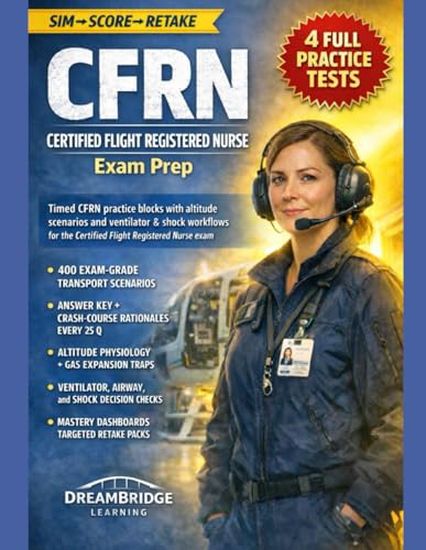 CFRN CERTIFIED FLIGHT REGISTERED NURSE EXAM PREP: FOUR FULL-LENGTH SIMULATIONS, EXAM-GRADE RATIONALES, AEROMEDICAL MICRO-LESSONS, DASHBOARDS, AND ADAPTIVE RETAKE PACKS