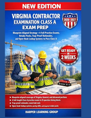 VIRGINIA CONTRACTOR EXAMINATION CLASS A EXAM PREP: Blueprint-Aligned Strategy + 4 Full Practice Exams, Retake Packs, Trap-Proof Rationales, and Open-Book Lookup Systems to Pass Class A