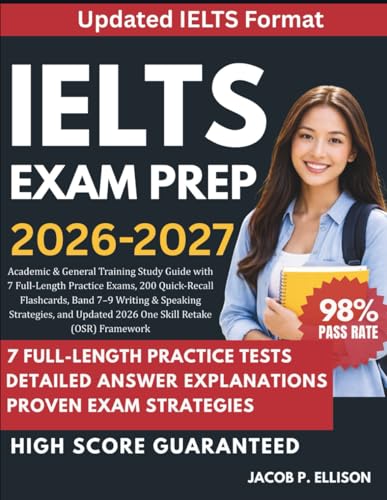 IELTS EXAM PREP 2026-2027: Academic & General Training Study Guide with 7 Full-Length Practice Exams, 200 Quick-Recall Flashcards, Band 7–9 Writing & ... Updated 2026 One Skill Retake (OSR) Framework