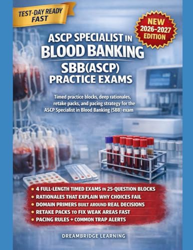 ASCP SPECIALIST IN BLOOD BANKING SBB(ASCP) PRACTICE EXAMS: FOUR FULL-LENGTH PRACTICE EXAMS WITH HIGH-YIELD RATIONALES, PITFALLS, AND RETAKE PACKS TO FIX WEAK SPOTS FAST AND PASS THE (ASCP) EXAM.
