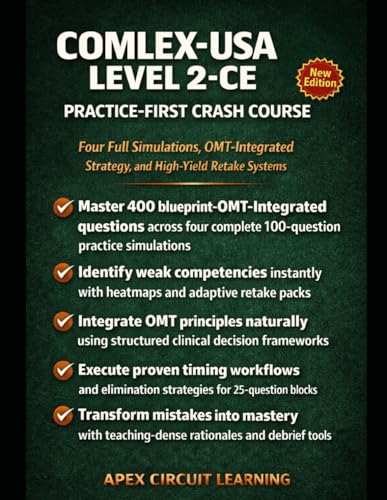 COMLEX-USA LEVEL 2-CE PRACTICE-FIRST CRASH COURSE: Master Clinical Decision-Making with Blueprint-Aligned Practice Tests, Competency Heatmaps, Adaptive Retake Systems & High-Yield Study Strategies