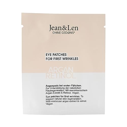 Jean & Len Regenerating Eye Pads Argan Oil & Retinol, för första rynkor, pads av biocellulosa, intensivt återfuktande, utan parabener & silikoner, vegan, 1 x 2 st.
