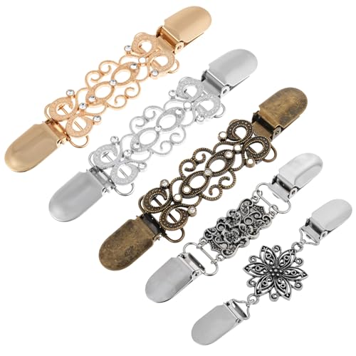 Jeffdad 5 stycken tröjklämmor, vintage cardigan clips, antik halsduk klipp broscher, damers halsduk spänne, retro cardigan krage klämma för pullover koftor skjortor