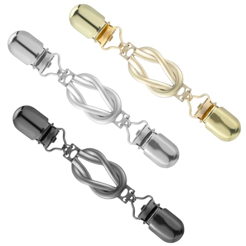 Lusofie 3 stycken vintage tröjor klämmor cinchclip dam cardigan klänningar midjespännare retro dekorativa för kläder byxor sjalkrage koftor (3 färger), 12 × 2,1 cm, Zink