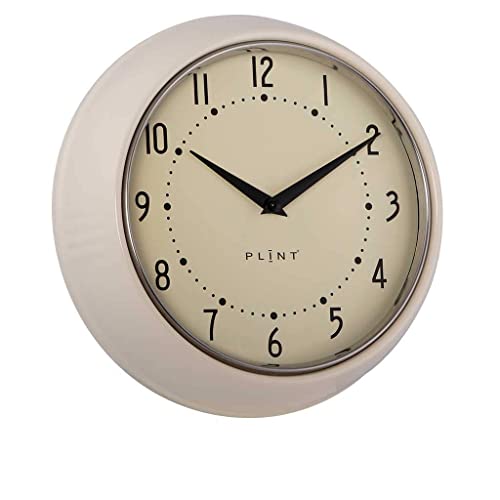 PLINT Retro Wall Clock Silent Non-Ticking Decorative Cream Color Wall Clock, Retro Style Wall Decoration for Kitchen Living Room Home, Office, School, Easy to Read Large Numbers