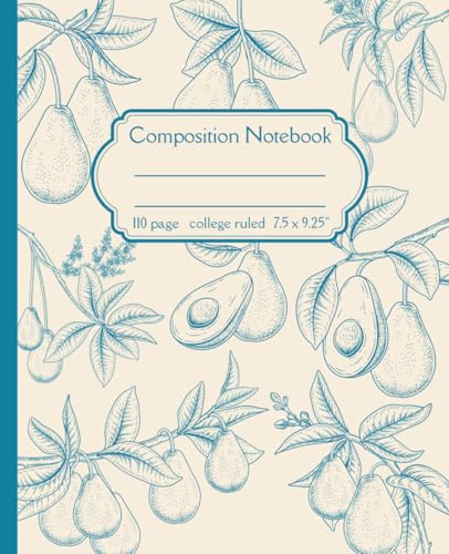 Composition Notebook Vintage Avocado Botanical Pattern: College Ruled, 110 Pages, 7.5 x 9.25 Inch - Aesthetic Retro Blue & Cream Fruit Journal for Students, Teens and Foodies