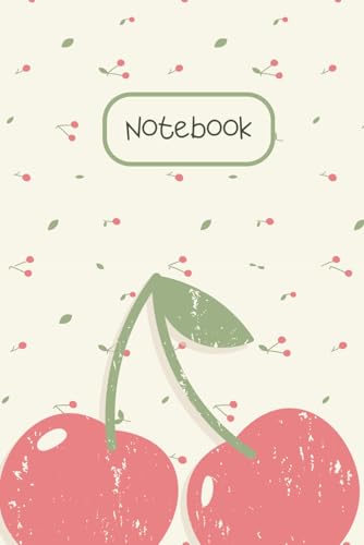 Cute Cherry Notebook: 6x9 Lined Journal: Aesthetic Retro Fruit Pattern Diary | Coquette Style Vintage Pink Cherries Composition Book for Girls, Teens & Students | Sweet Cream Writing Pad