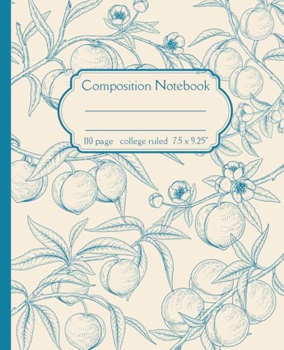 Composition Notebook Vintage Peach Botanical Pattern: College Ruled, 110 Pages, 7.5 x 9.25 Inch - Aesthetic Retro Blue & Cream Fruit Journal for Students, Teens and Nature Lovers
