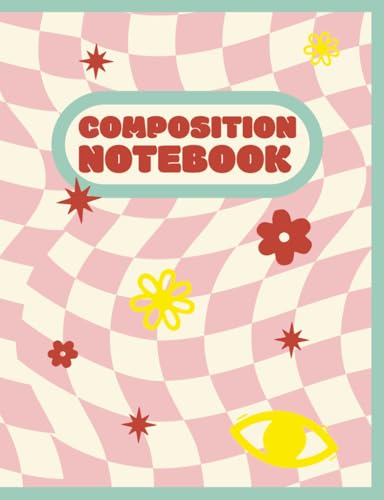Composition Notebook: Wide Ruled, 110 Pages, Aesthetic Pink & Cream Wavy Checkerboard Pattern, Retro Cute Journal for Teen Girls for School