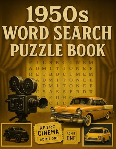 1950s Word Search Puzzle Book: Nostalgic Fun from the Golden Age of Movies: Brain-boosting retro puzzles for adults , seniors , and vintage film lovers-large print and relaxing entertainment