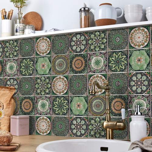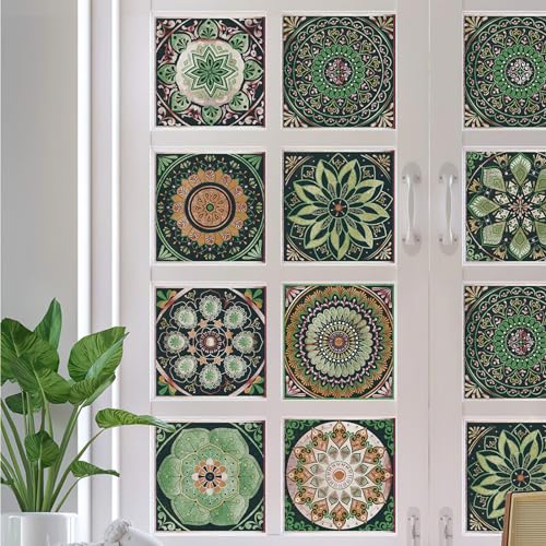 Targawerelax 24 pcs kakeldekor självhäftande kök badrum kakelklistermärken för köksväggplattor klistermärken tapet badrumsdekaler vattentätt självhäftande, kakel klistermärken, Grön retro mandala