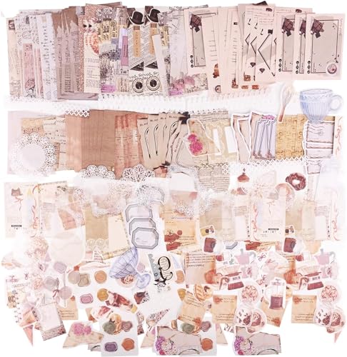 Yukiyi 260 st vintage scrapbooking klistermärken paket vintage klistermärken gör-det-själv retro journalföring tillbehör klistermärken kit klippbok papperstillbehör kontorsmaterial studie washi papper