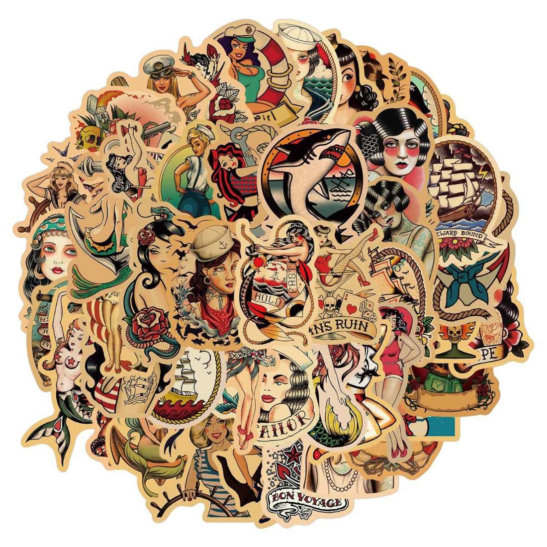 Retro vintage klistermärken, 36 stora reseklistermärken för bil resväska skateboard skridskoåkning gitarr