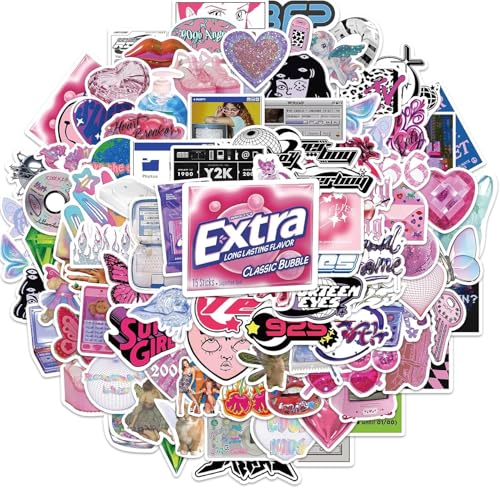 Y2K-klistermärken 106 st kokettpaket – retro 2000-tals cyberdekor, vattentäta vinylklistermärken för bärbar dator, telefon, skateboard, födelsedagspresenter för flickor, tonåringar