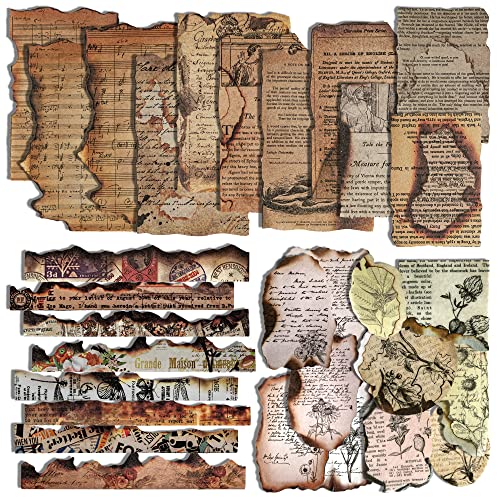 Vintage Burnt Edge Style Retro Scrapbook Paper Set Antik Musikpartitur Dekorativt papper Antik Plant Scrapbook Paper med klistermärken för Dagbok Journal Card Making Paper Craft DIY Cutting (Flame)