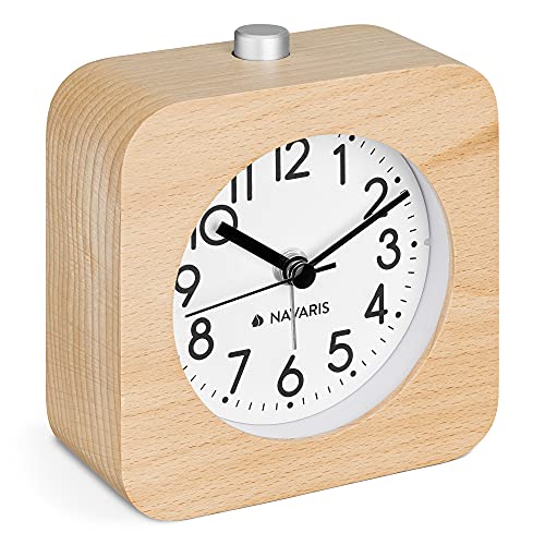 Navaris Analog trä väckarklocka med snooze - Retro klocka med urtavla ljus - Tyst Vintage bordsur av trä utan att ticka - Naturligt trä i ljusbrunt